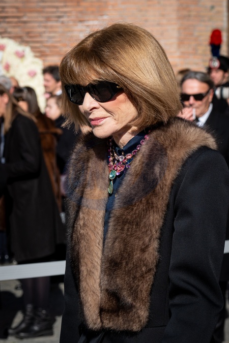 Anna Wintour is seen at the funeral ceremony for the late Italian fashion designer Valentino Gavarani at Basilica di Santa Maria degli Angeli e dei Martiri in Rome, Italy, on 23 January, 2026., Credit:Stefano Costantino TTL / Avalon