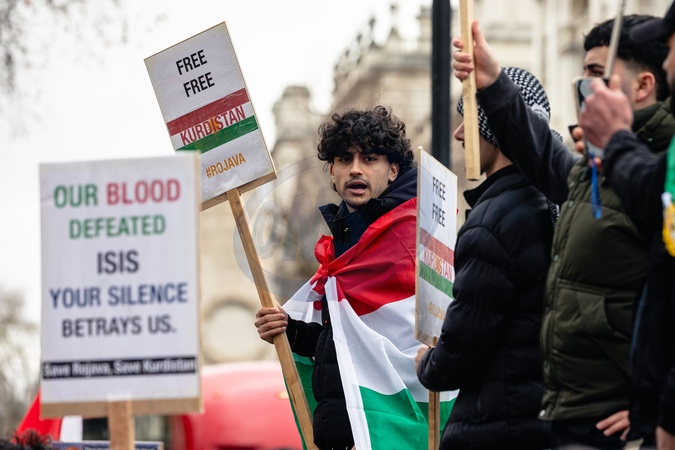 Kurdish protest outside Downing Street in London, UK, on 23 January 2026