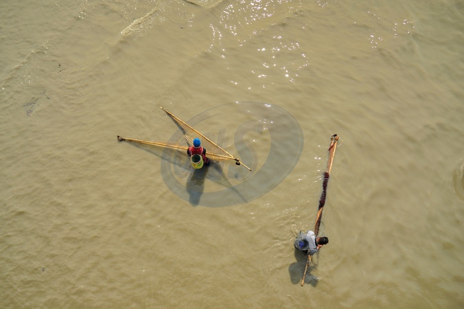 Chattogram, Bangladesh- Fisherman are casts a handmade net to catch fish near the Sitakunda coastline along the Bay of Bengal., Credit:Md Rafayat Haque Khan / Avalon
