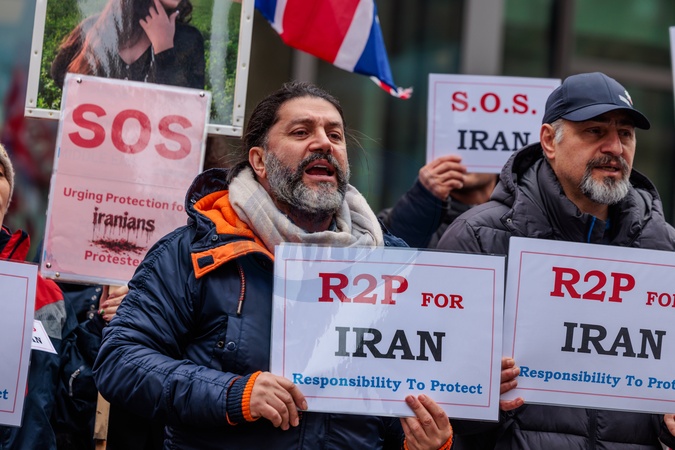 US Embassy, London, UK. 23rd January 2026.Iranian activists, who have joined former political prisoner Nasrin Roshan on Day 7 of her hunger strike outside the US Embassy in London, call on the International community to enact the Responsibility to Protect (R2P) - a global political commitment to protect populations from mass atrocities such as genocide and crimes against humanity., Credit:Photo by Amanda Rose / Avalon