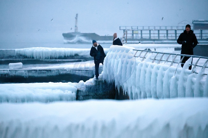 People visit the ice-covered promenade near Lanzheron Beach in Odesa, Ukraine, on January 20, 2026, Credit:Nina Liashonok / Avalon