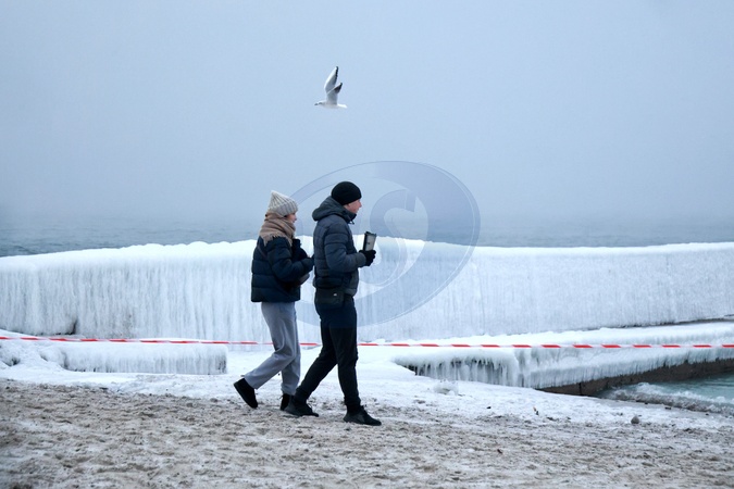 People walk along the ice-covered Lanzheron Beach in Odesa, Ukraine, on January 20, 2026, Credit:Nina Liashonok / Avalon