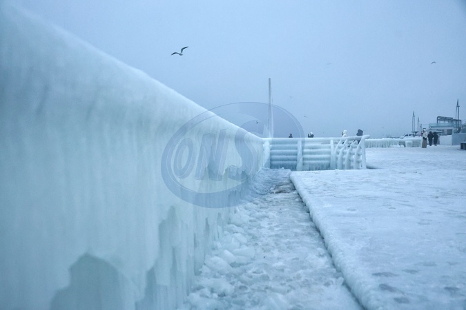 Ice-covered railings are seen on the promenade near Lanzheron Beach in Odesa, Ukraine, on January 20, 2026, Credit:Nina Liashonok / Avalon