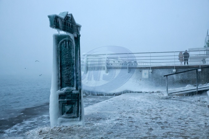 The art object House of the Sun is covered with ice on the promenade near Lanzheron Beach in Odesa, Ukraine, on January 20, 2026, Credit:Nina Liashonok / Avalon