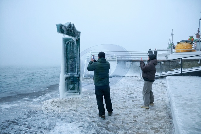 People photograph the ice-covered art object House of the Sun on the promenade in the area of Lanzheron Beach in Odesa, Ukraine, on January 20, 2026, Credit:Nina Liashonok / Avalon