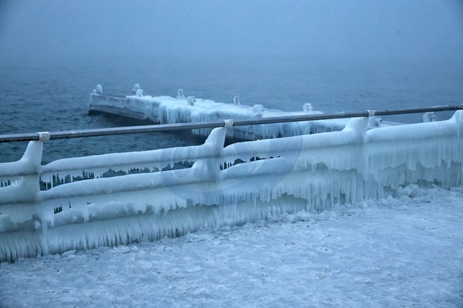 Ice-covered railings are seen on the promenade near Lanzheron Beach in Odesa, Ukraine, on January 20, 2026, Credit:Nina Liashonok / Avalon