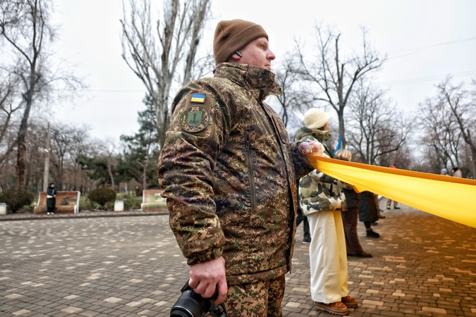 Participants unfold a 13-meter national flag of Ukraine in Taras Shevchenko Park during Unity Day celebration in Odesa, Ukraine, on January 22, 2026, Credit:Nina Liashonok / Avalon