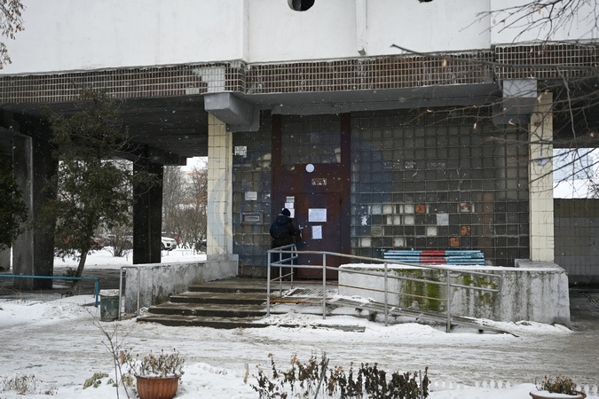 A woman enters a residential building on Ihor Shamo Boulevard in the Dniprovskyi district of Kyiv, Ukraine, on January 23, 2026. Following Russian attacks, the building has been without heating since January 9, while extended heating and power outages have lowered indoor temperatures to +2°C and left elevators out of service, Credit:Yevhen Kotenko / Avalon