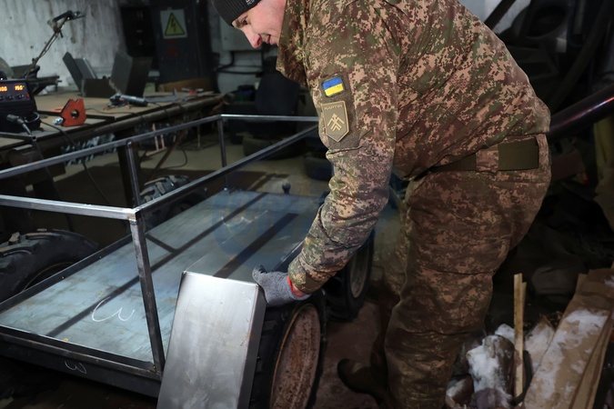 A serviceman of the operational assignment battalion of the 13th National Guard of Ukraine Brigade Khartia works on platforms for ground robotic systems at a workshop in Ukraine, on January 22, 2026, Credit:Viacheslav Madiievskyi / Avalon