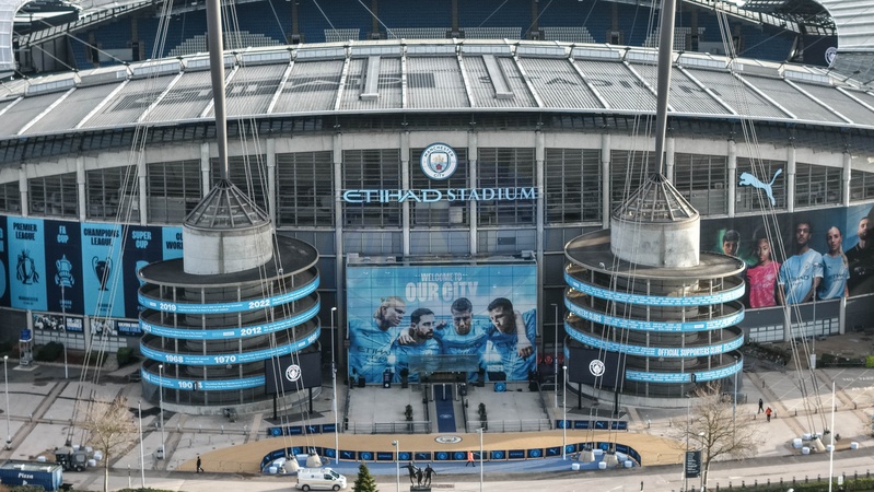 An aerial view of Etihad Stadium during the Premier League match Manchester City vs Wolverhampton Wanderers at Etihad, Manchester, United Kingdom on 24 January 2026, Credit:Mark Cosgrove/News Images / Avalon