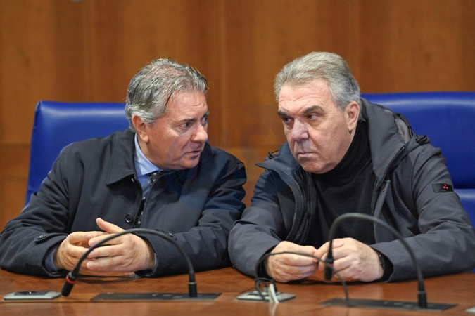 Following Cyclone Harry, the Undersecretary to the Presidency of the Council of Ministers met with Civil Protection personnel at their headquarters in Catanzaro. Pictured: From left: Filippo Mancuso, Vice President of the Calabria Region; Luigi Sbarra, Undersecretary to the Presidency of the Council of Ministers. Catanzaro, Italy 24 January 2026, Credit:Valeria Ferraro / Avalon