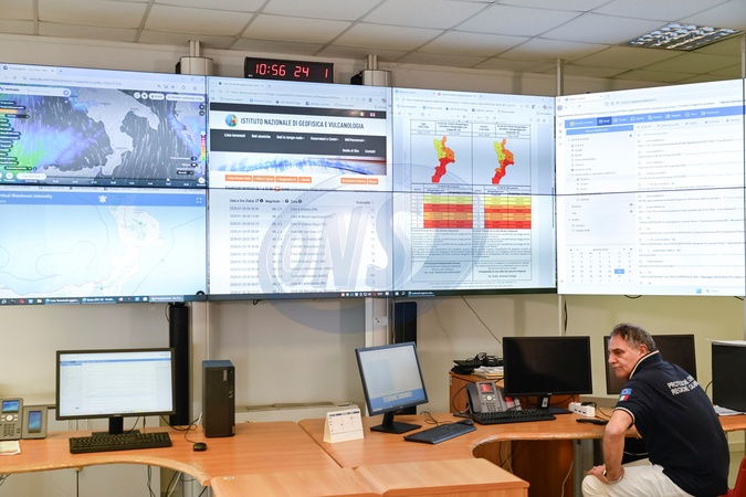 Following Cyclone Harry, the Undersecretary to the Presidency of the Council of Ministers met with Civil Protection personnel at their headquarters in Catanzaro. Pictured is a Civil Protection worker monitoring data. Catanzaro, Italy 24 January 2026, Credit:Valeria Ferraro / Avalon