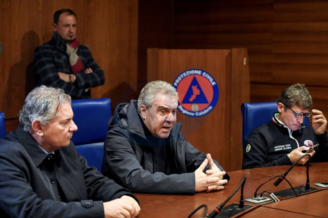 Following Cyclone Harry, the Undersecretary to the Presidency of the Council of Ministers met with Civil Protection personnel at the Catanzaro headquarters. Pictured: From left: Filippo Mancuso, Vice President of the Calabria Region; Luigi Sbarra, Undersecretary to the Presidency of the Council of Ministers; Domenico Costarella, Director General of Civil Protection for Calabria. Catanzaro, Italy 24 January 2026, Credit:Valeria Ferraro / Avalon