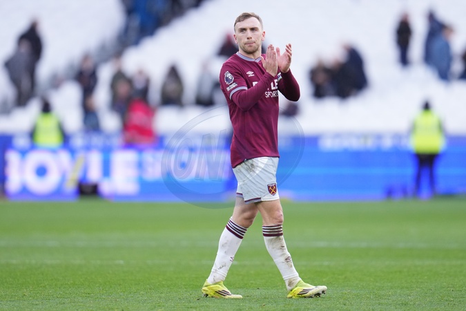 Jarrod Bowen of West Ham United applauds home support at full time during the Premier League match West Ham United vs Sunderland at London Stadium, London, United Kingdom, 24th January 2026, Credit:Harvey Murphy/News Images / Avalon