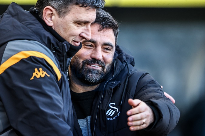Sergej Jakirovi manager of Hull City embraces Vitor Matos manager of Swansea City during the Sky Bet Championship match Hull City vs Swansea City at MKM Stadium, Hull, United Kingdom on 24 January 2026, Credit:Ae Cosgrove/News Images / Avalon