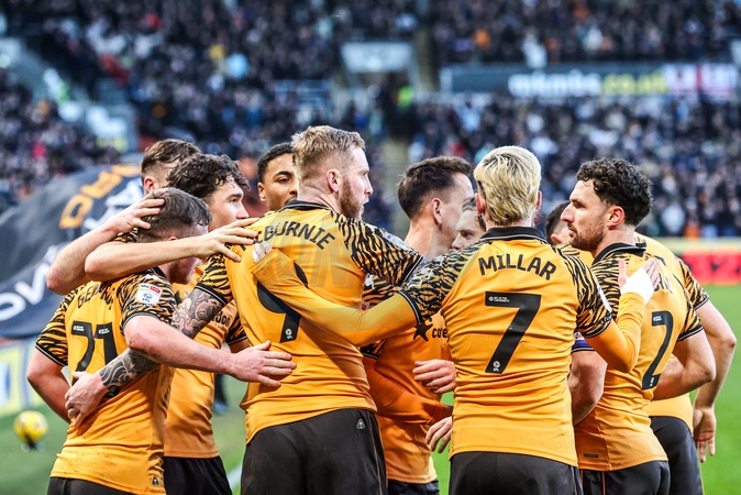 Oliver McBurnie of Hull City celebrates his goal to make it 1-0 during the Sky Bet Championship match Hull City vs Swansea City at MKM Stadium, Hull, United Kingdom on 24 January 2026, Credit:Ae Cosgrove/News Images / Avalon