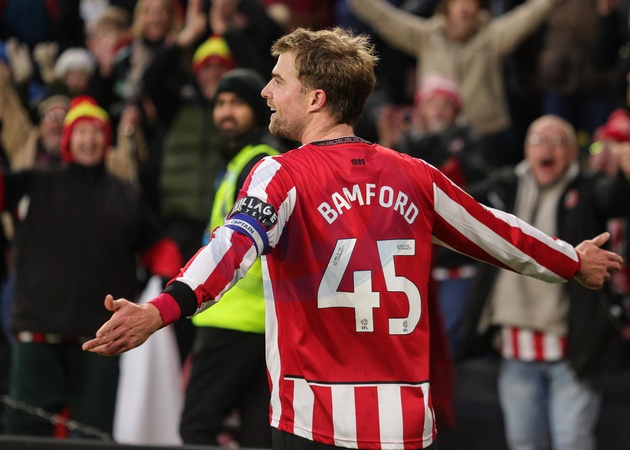 Patrick Bamford of Sheffield United celebrates his goal to make it 3-1 during the Sky Bet Championship match Sheffield United vs Ipswich Town at Bramall Lane, Sheffield, United Kingdom, 24th January 2026, Credit:Richard Bierton/News Images / Avalon
