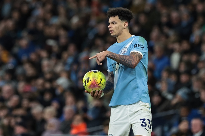 Nico O'Reilly of Manchester City prepares to take a throw-in during the Premier League match Manchester City vs Wolverhampton Wanderers at Etihad, Manchester, United Kingdom on 24 January 2026, Credit:Mark Cosgrove/News Images / Avalon