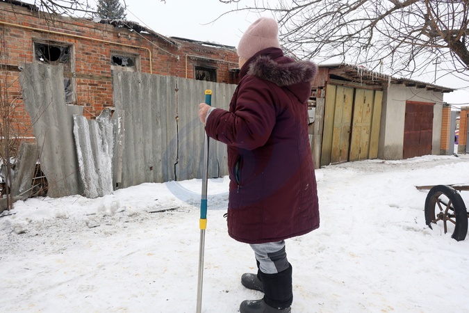 Pensioner Mariia Ilarionivna, who survived a Russian drone strike on her house, meets the press, Kharkiv, Ukraine, January 24, 2026. The overnight Russian attack left 27 people injured. Residential buildings, a maternity hospital, and a dormitory were also damaged., Credit:Viacheslav Madiievskyi / Avalon