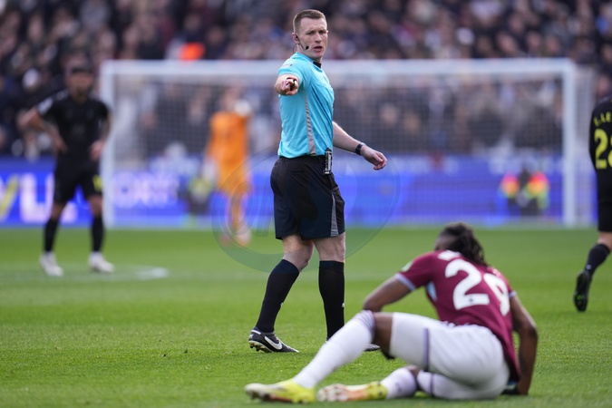 Thomas Bramall the referee during the Premier League match West Ham United vs Sunderland at London Stadium, London, United Kingdom, 24th January 2026, Credit:Harvey Murphy/News Images / Avalon