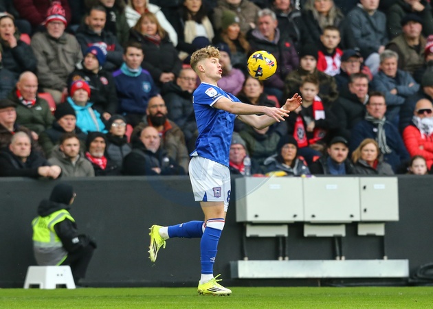 Sindre Walle Egeli of Ipswich Town controls the ball during the Sky Bet Championship match Sheffield United vs Ipswich Town at Bramall Lane, Sheffield, United Kingdom, 24th January 2026, Credit:Richard Bierton/News Images / Avalon