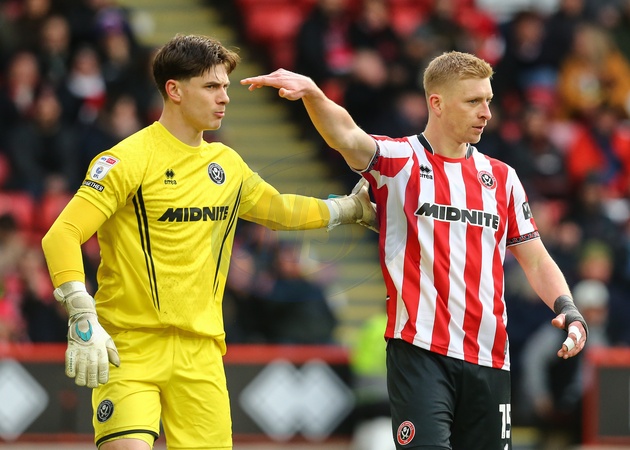 Sheffield United goalkeeper Michael Cooper and Ben Mee of Sheffield United during the Sky Bet Championship match Sheffield United vs Ipswich Town at Bramall Lane, Sheffield, United Kingdom, 24th January 2026, Credit:Richard Bierton/News Images / Avalon
