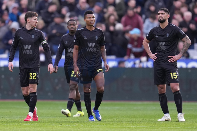 Sunderland players look on after third goal is conceded during the Premier League match West Ham United vs Sunderland at London Stadium, London, United Kingdom, 24th January 2026, Credit:Harvey Murphy/News Images / Avalon