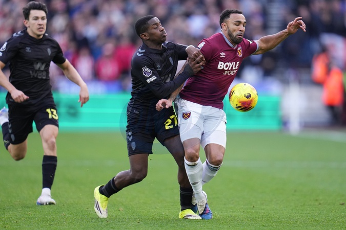 Noah Sadiki of Sunderland fouls Callum Wilson of West Ham United during the Premier League match West Ham United vs Sunderland at London Stadium, London, United Kingdom, 24th January 2026, Credit:Harvey Murphy/News Images / Avalon