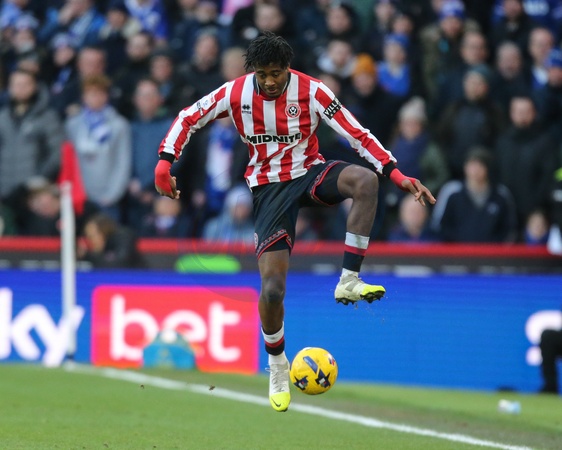 Andre Brooks of Sheffield United in action during the Sky Bet Championship match Sheffield United vs Ipswich Town at Bramall Lane, Sheffield, United Kingdom, 24th January 2026, Credit:Richard Bierton/News Images / Avalon