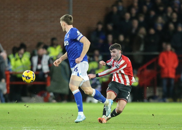 Thomas Cannon of Sheffield United tries a shot from his own half during the Sky Bet Championship match Sheffield United vs Ipswich Town at Bramall Lane, Sheffield, United Kingdom, 24th January 2026, Credit:Richard Bierton/News Images / Avalon