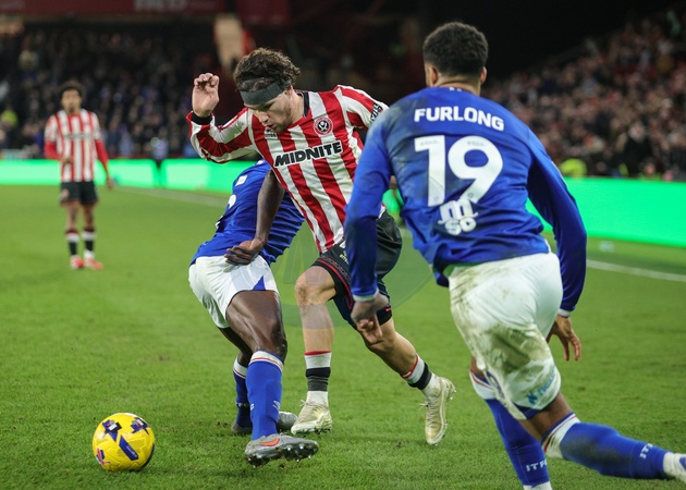 Callum O'Hare of Sheffield United in action during the Sky Bet Championship match Sheffield United vs Ipswich Town at Bramall Lane, Sheffield, United Kingdom, 24th January 2026, Credit:Richard Bierton/News Images / Avalon