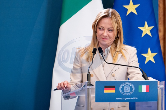 Italian Prime Minister Giorgia Meloni receives the German Federal Chancellor Friedrich Merz, for the Italy-Germany Intergovernmental Summit, at Villa Doria Pamphilj in Rome, Italy on 23 January 2025., Credit:Stefano Costantino TTL / Avalon