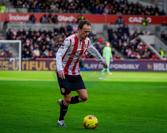 Mikkel Damsgaard of Brentford makes a run with the ball during the Premier League match Brentford vs Nottingham Forest at The Gtech Community Stadium, London, United Kingdom, 25th January 2026, Credit:Maynard Manyowa/News Images / Avalon