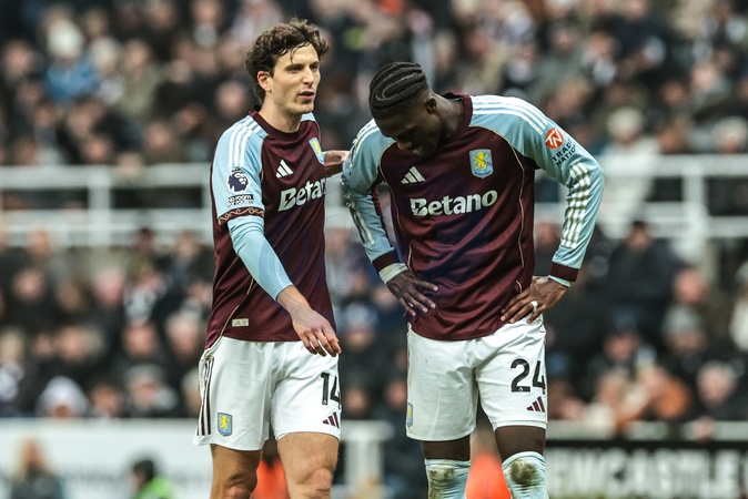 Pau Torres of Aston Villa talks to Amadou Onana of Aston Villa during the Premier League match Newcastle United vs Aston Villa at St. James's Park, Newcastle, United Kingdom, 25th January 2026, Credit:Mark Cosgrove/News Images / Avalon