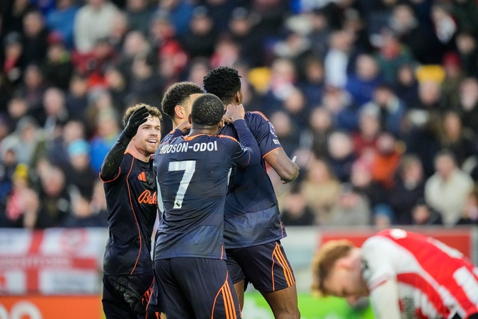 Taiwo Awoniyi of Nottingham Forest celebrates his goal to make it 0-2 during the Premier League match Brentford vs Nottingham Forest at The Gtech Community Stadium, London, United Kingdom, 25th January 2026, Credit:Maynard Manyowa/News Images / Avalon