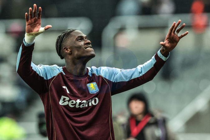 Amadou Onana of Aston Villa celebrates the win with the fans during the Premier League match Newcastle United vs Aston Villa at St. James's Park, Newcastle, United Kingdom, 25th January 2026, Credit:Mark Cosgrove/News Images / Avalon