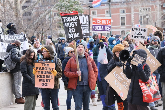 Ice Protest near Free library of Philadelphia 's Central Branch Library at 1801 Vine Street Where PA Governor Josh Shapiro Had a Book Signing on 01/24/2026, Credit:William T. Wade Jr./Photography / Avalon