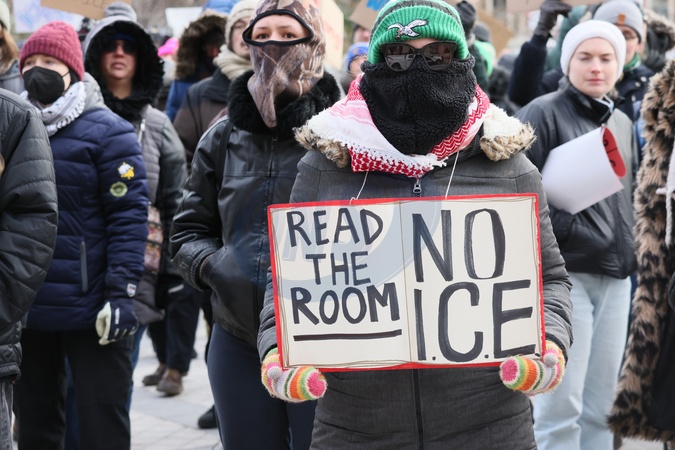 Ice Protest near Free library of Philadelphia 's Central Branch Library at 1801 Vine Street Where PA Governor Josh Shapiro Had a Book Signing on 01/24/2026, Credit:William T. Wade Jr./Photography / Avalon