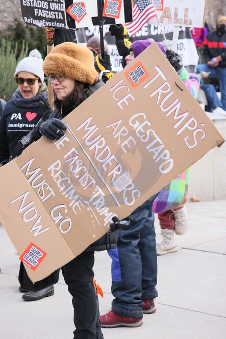 Ice Protest near Free library of Philadelphia 's Central Branch Library at 1801 Vine Street Where PA Governor Josh Shapiro Had a Book Signing on 01/24/2026, Credit:William T. Wade Jr./Photography / Avalon
