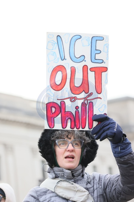 Ice Protest near Free library of Philadelphia 's Central Branch Library at 1801 Vine Street Where PA Governor Josh Shapiro Had a Book Signing on 01/24/2026, Credit:William T. Wade Jr./Photography / Avalon