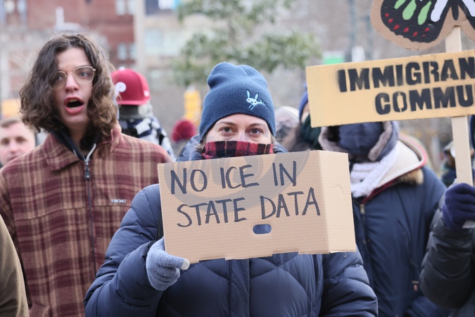 Ice Protest near Free library of Philadelphia 's Central Branch Library at 1801 Vine Street Where PA Governor Josh Shapiro Had a Book Signing on 01/24/2026, Credit:William T. Wade Jr./Photography / Avalon