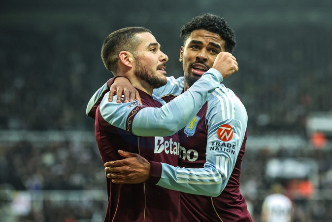 Emi Buendia of Aston Villa celebrates his goal to make it 0-1 during the Premier League match Newcastle United vs Aston Villa at St. James's Park, Newcastle, United Kingdom, 25th January 2026, Credit:Mark Cosgrove/News Images / Avalon