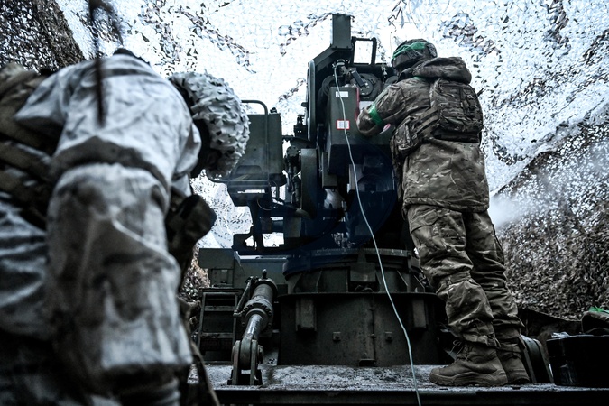 Soldiers from the Striletskyi special forces police battalion of the National Police in the Zaporizhzhia region prepare a Ukrainian 2S22 Bohdana 155 mm self-propelled howitzer to strike Russian manpower and equipment in the Pokrovsky direction, Donetsk region, Ukraine, January 23, 2026., Credit:Dmytro Smolienko / Avalon