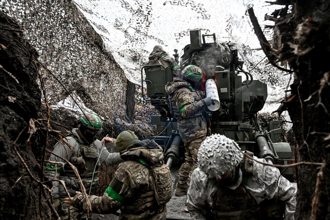 Ukrainian artillery soldiers in action in Donetsk region