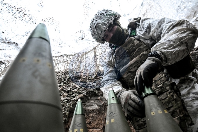 A soldier from the Striletskyi special forces police battalion of the National Police in the Zaporizhzhia region prepares 155 mm shells for a 2S22 Bohdana self-propelled howitzer to fire at Russian manpower and equipment in the Pokrovsky direction, Donetsk region, Ukraine, January 23, 2026., Credit:Dmytro Smolienko / Avalon