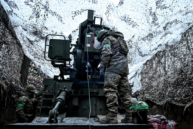Ukrainian artillery soldiers in action in Donetsk region