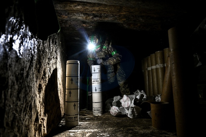 A soldier from a 2S22 Bohdana self-propelled howitzer crew of the Striletskyi special forces police battalion of the National Police in the Zaporizhzhia region prepares 155 mm shells in the light of a headlamp in a dugout to fire at Russian manpower and equipment in the Pokrovsky direction, Donetsk region, Ukraine, January 23, 2026., Credit:Dmytro Smolienko / Avalon