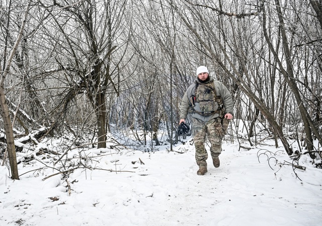 A soldier from a UAS crew of the Striletskyi special forces police battalion of the National Police in Zaporizhzhia region that carries out combat missions with a Ukrainian GARA drone walks through the snow in the Pokrovsky direction, Donetsk region, Ukraine, January 23, 2026., Credit:Dmytro Smolienko / Avalon