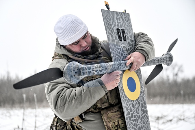 A soldier from a UAS crew of the Striletskyi special forces police battalion of the National Police in Zaporizhzhia region assembles a Ukrainian GARA drone before a combat mission in the Pokrovsky direction, Donetsk region, Ukraine, January 23, 2026., Credit:Dmytro Smolienko / Avalon