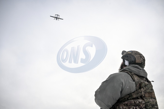 A soldier from a UAS crew of the Striletskyi special forces police battalion of the National Police in Zaporizhzhia region watches a Ukrainian GARA drone fly during a combat mission in the Pokrovsky direction, Donetsk region, Ukraine, January 23, 2026., Credit:Dmytro Smolienko / Avalon